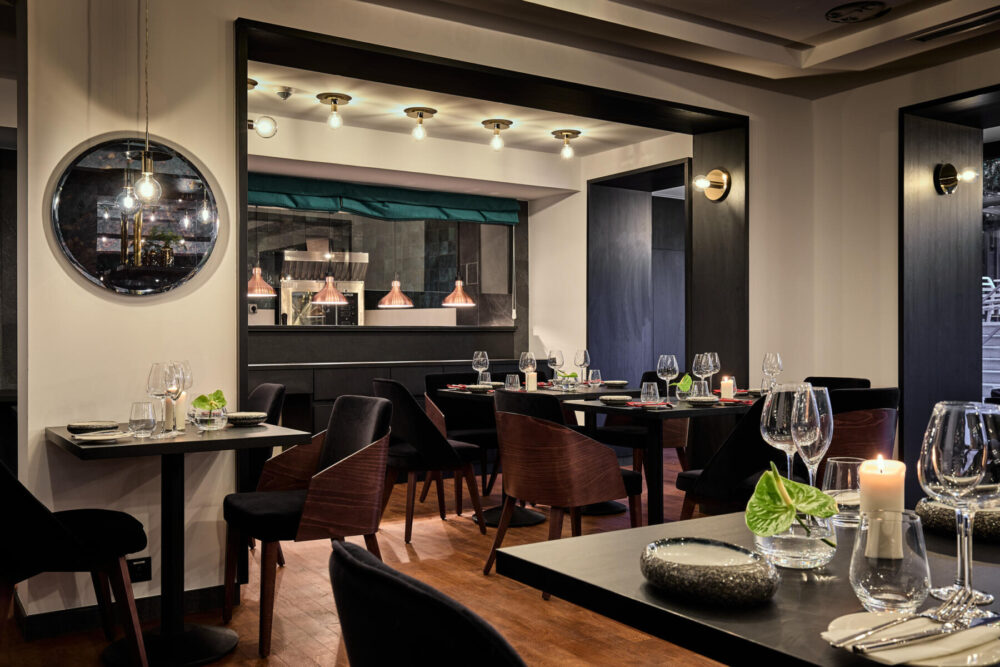An elegant restaurant serving international cuisine based on the finest products, and a bar specializing in gins from all over the world.