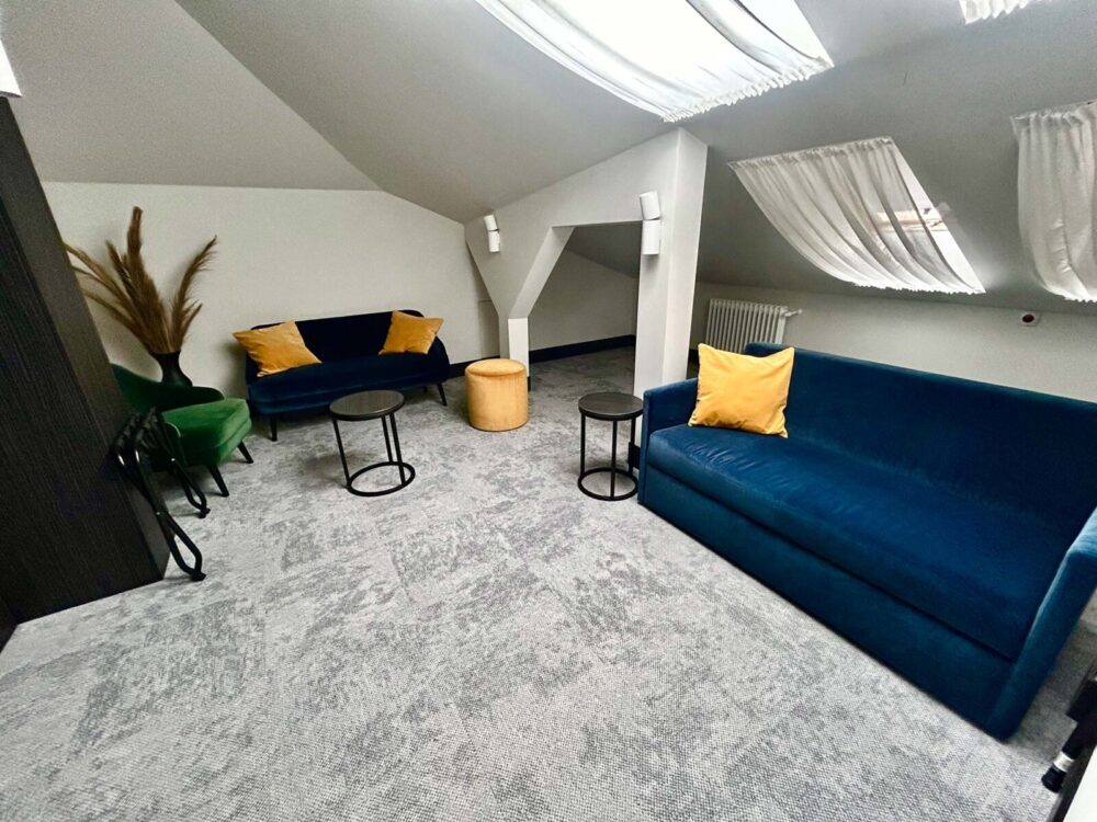 A bedroom with a large double bed and a living room with a sofa bed allow the family to rest comfortably as well. A cup of coffee from the coffee machine that comes with the apartment, drunk in the morning in a cozy bathrobe, will be a great start to a day full of Poznan attractions.